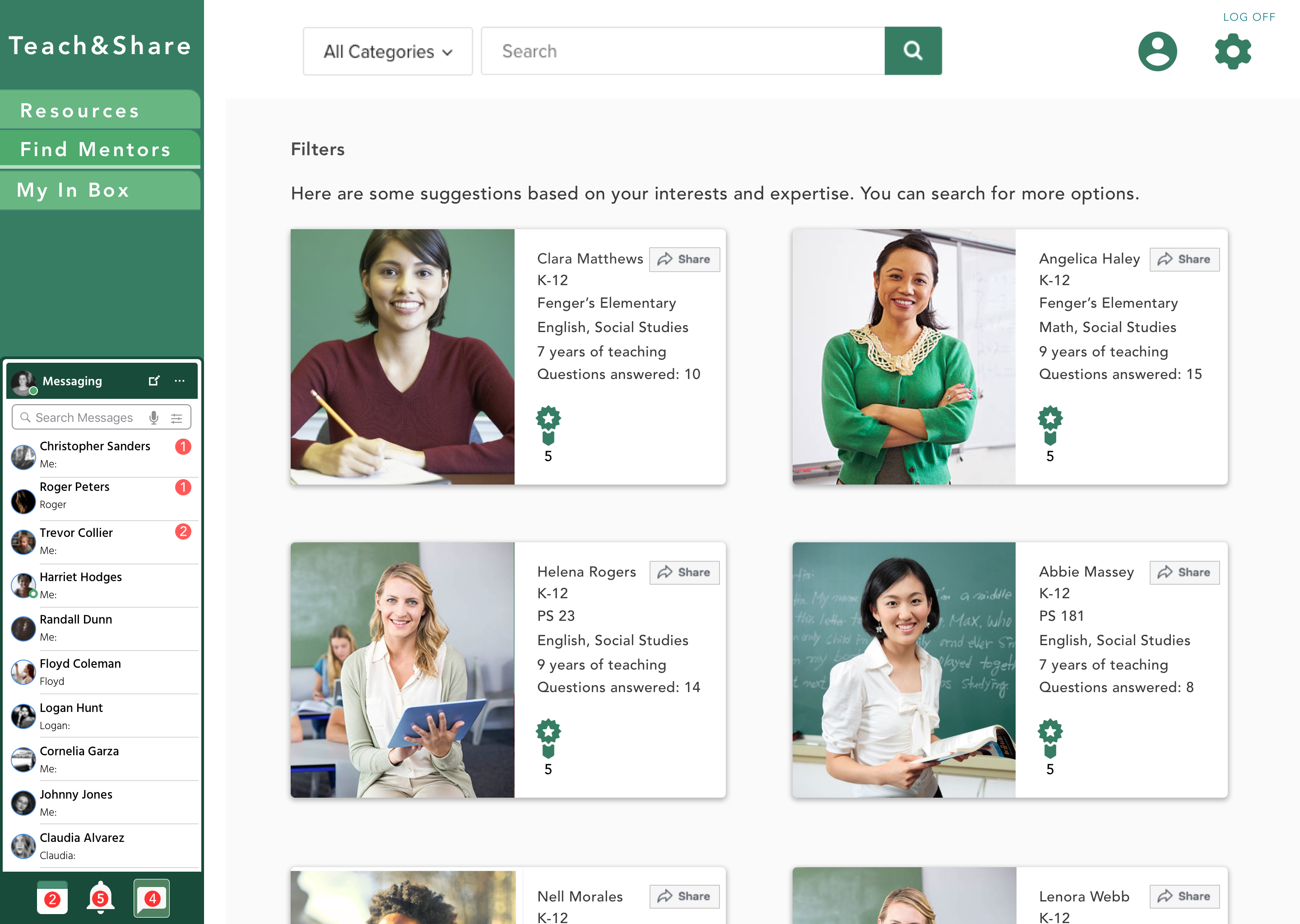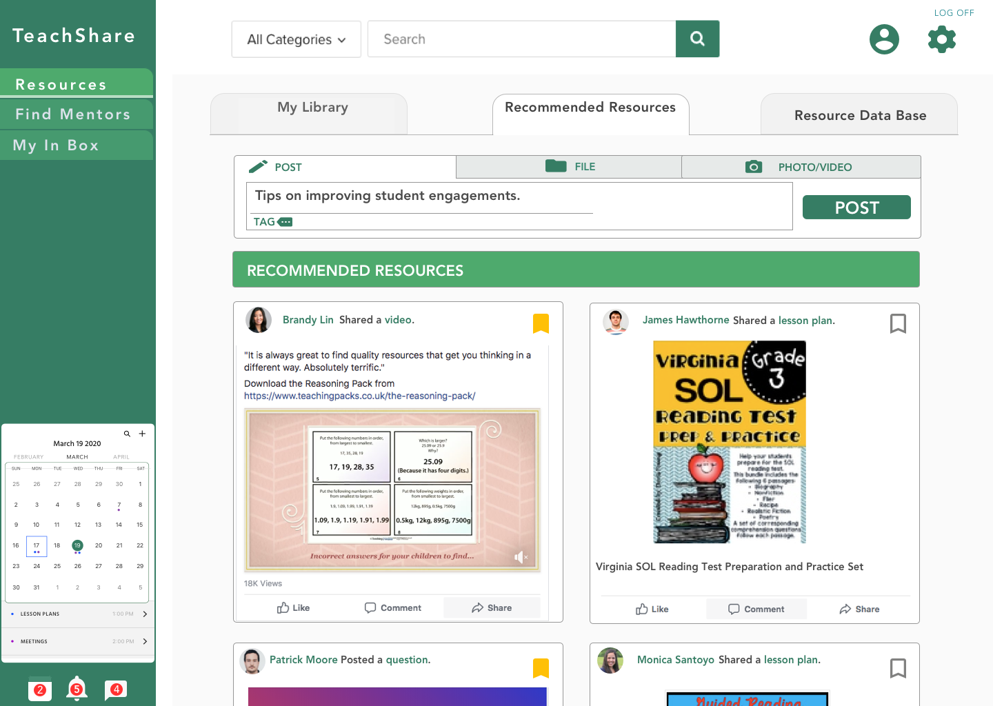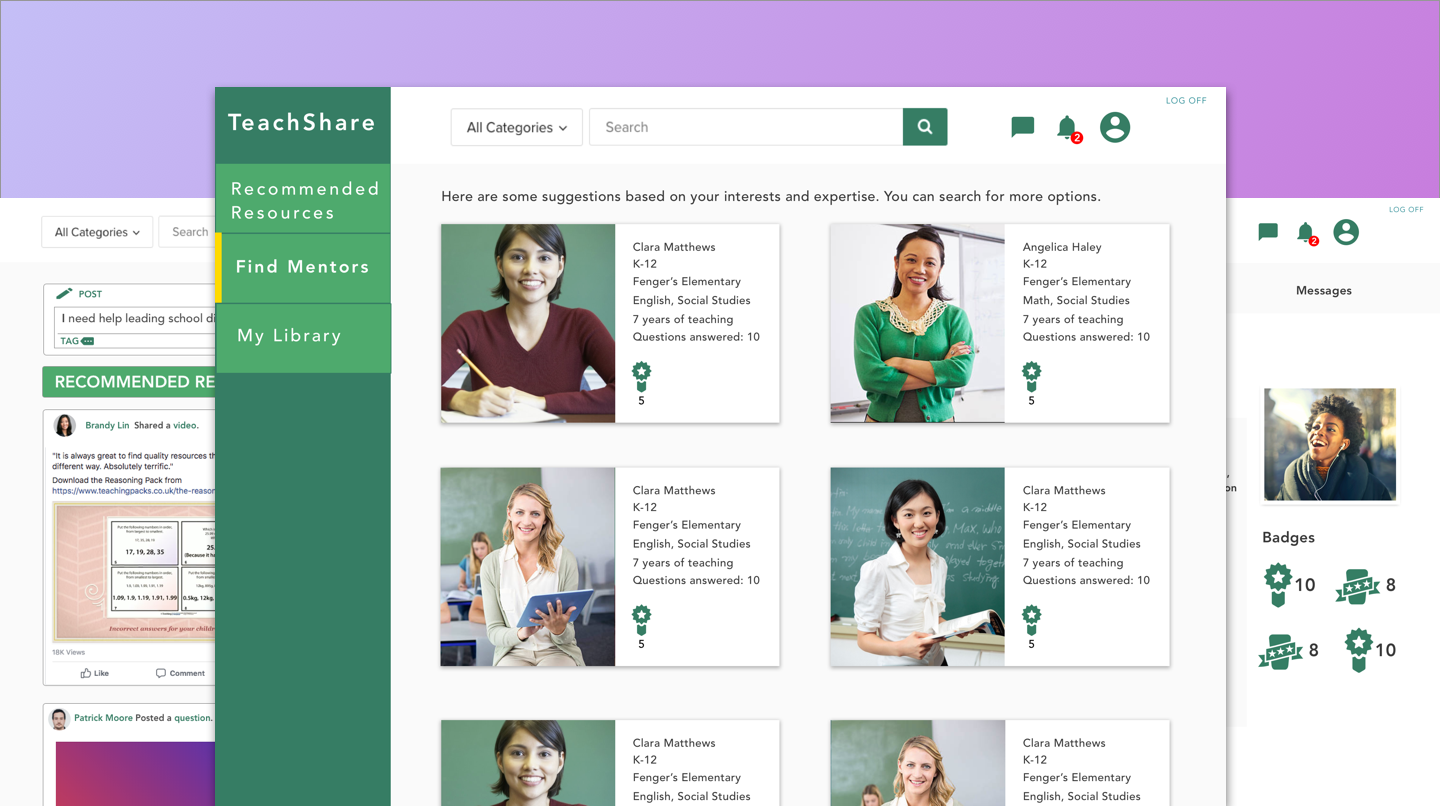 Design an easy to use site that enables teachers no matter how long they've been working as a teacher to create meaningful and useful connections between multiple mentors, build communities, share valuable resources on all topics with various content materials.