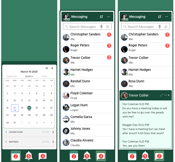 Now users could assess their calendar, messages, and customizable notifications in one location by clicking on one of the icons in the footer.